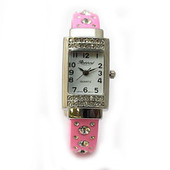 ラインストーンぎっしりのカラフルメタルバングル。角型フェイスです。