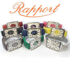 弊社の人気商品、スクエアフェイスのジャバラウォッチ。豊富なカラー展開が自慢です。全9色。