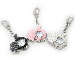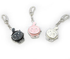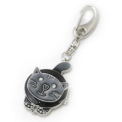 猫のお顔をクルリと回して時間を確認。キーホルダータイプの時計です。全3色。