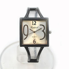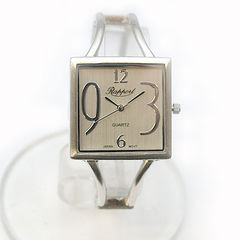 四角いフェイスと文字盤を飾る数字が個性的なバングルウォッチです。