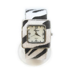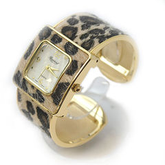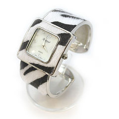 ハラコ風のモコモコ素材アニマル柄がおしゃれな感じのバングルウォッチです。