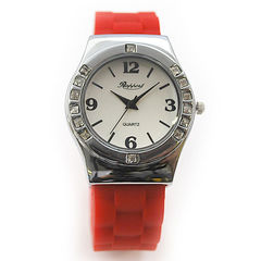 メタルにラバー素材をかぶせたバングルが、一風かわってておもしろい夏向きバングルウォッチ。