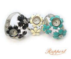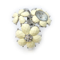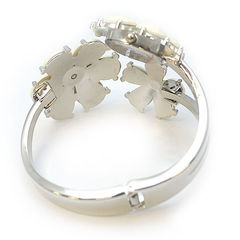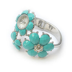 お花のブレスレットに時計がついた、ユニークでおしゃれなメタルバングルです。