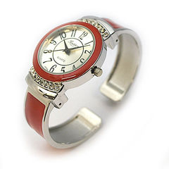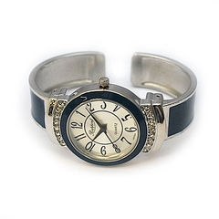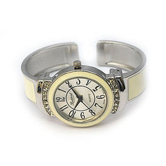 丸型フェイスの上下にラインストーンをあしらったメタルバングルです。