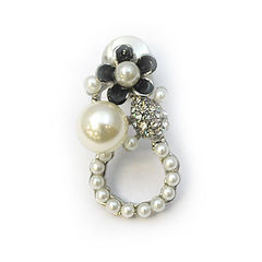 お花とパールのピンブローチ・メガネホルダータイプ(113415)