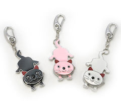 猫のお顔をクルリと回して時間を確認。キーホルダータイプの時計です。全3色。