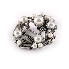 パールリースのブローチ。パール使いのアクセは人気があります。