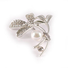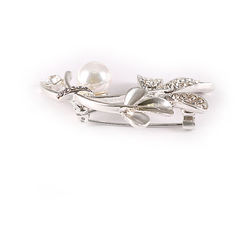 パールとクローバーのブローチ。パール使いのアクセは人気があります。