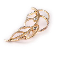 ラインストーンを使ったリーフのブローチ。ふたつの大きめラインストーンがポイントです。